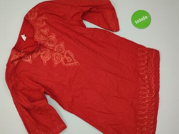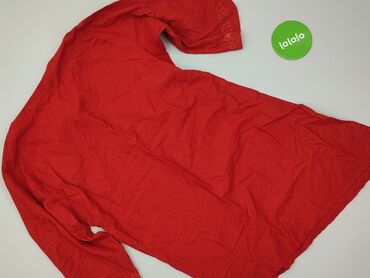 Czerwona koszula/tunika damska z krótkim rękawem - Krój: luźny, lekko oversize, opadające ramiona - Zapięcie: pełny rząd guzików z przodu - Dekolt: w kształcie litery V z listwą guzikową - Rękaw: ...