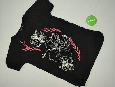 Bluzka/tunika damska z elastycznej dzianiny, wzór w duże kwiaty. - Krój: lekko luźny, z wydłużonym dołem; wszyta szeroka czarna listwa na dole optycznie porządkuje sylwetkę. - Dekolt: okrągły, obs...