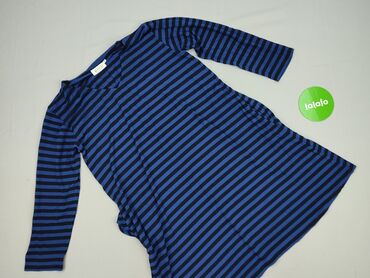Bluzka damska M&S Collection - Kolor: granatowy w wąskie białe paski - Fason: prosta tunika z opuszczoną linią ramion - Rękawy: 3/4, lekko zwężane przy mankietach - Dekolt: łódkowy - Dół: szeroki ...