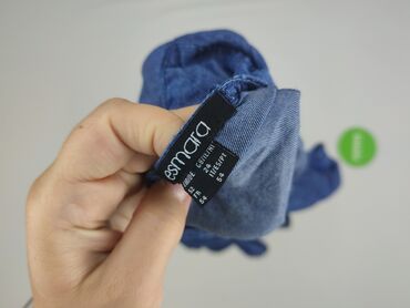 Sukienka/ tunika jeansowa Esmara - Model: luźna tunika z denimu w odcieniu niebieskiego - Dekolt: w kształcie litery V z ozdobną plisą - Rękawy: 3/4 z wiązaniami przy mankietach - Długość: do kola...