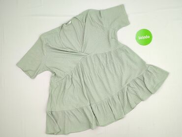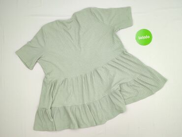 Bluzka damska George – zielona w biały kwiatowy wzór - Fason: krótka, rozkloszowana w talii z gumką, dekolt typu hiszpanka z wiązaniem z przodu - Rękawy: krótkie, bufiaste z delikatną gumką przy k...Stan: