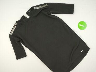 Sukienka/tunika damska NU. (rozmiar 38) - Kolor: czarny - Fason: prosta, lekko przedłużona tunika z długim rękawem i okrągłym dekoltem - Charakterystyczny element: duża aplikacja z przodu w formie...