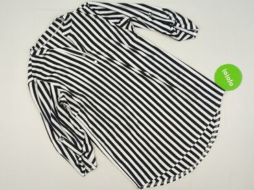 Bluzka damska w paski, rozmiar M - Fason: luźna tunika z dekoltem w serek i krótką listwą zapinaną na 1 guzik - Rękaw: 3/4 z delikatnie rozszerzanym mankietem - Wzór i kolory: szerokie poziome pas...