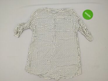 Damska bluzka z nadrukiem w czarno‑białe geometryczne koła. - Fason: tunikowy, lekko wydłużony, z szerokim ściągaczem u dołu i przy mankietach (gumka). - Dekolt: okrągły, zapinany na listwę z kil...Stan: