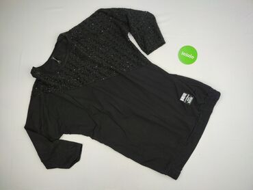 Sukienka/tunika damska NU. (rozmiar 38) - Kolor: czarny - Fason: prosta, lekko przedłużona tunika z długim rękawem i okrągłym dekoltem - Charakterystyczny element: duża aplikacja z przodu w formie...