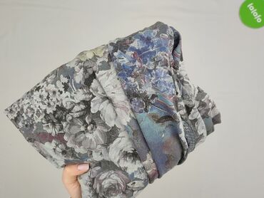 - Kolorystyka: chłodna paleta szarości z akcentami fioletu i błękitu; gęsty, malarski nadruk kwiatowy na całej powierzchni