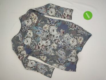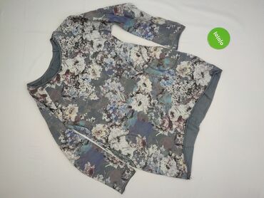 Bluzka damska z długim rękawem, rozmiar XXXL - Kolor: melanżowa szarość z granatowo-niebieskim ombre ku dołowi. - Wzór: roślinny/kwietny nadruk z czarnymi pnączami i niebieskimi kwiatami; dekoracy...