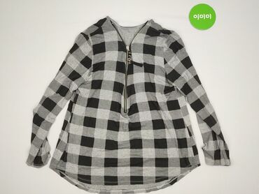 Damska tunika/luźna bluzka z długim rękawem - Rozmiar: L (na metce) - Skład: 100% poliester - Wzór: drobna krata w odcieniach czerni, szarości i delikatnego niebieskiego - Krój: swobodny, podszyty...