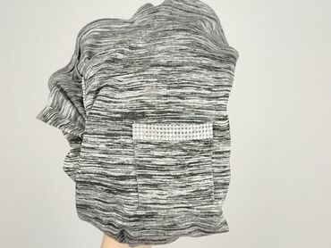 Szara damska tunika/bluzka z długim rękawem - Kolor: melanż szary - Fason: dopasowany, długość tunikowa - Dekolt: szeroki, półokrągły - Rękaw: długi - Ozdoby: aplikacja z błyszczących dżetów na pr...Stan: