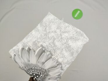 - Przód: duży aplikowany kwiat (słonecznik) w odcieniach szarości z trójwymiarowymi detalami – tiulowe płatki, haft, perełki/dekoracyjne koraliki