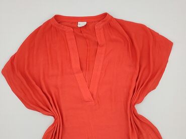 Bluzka/tunika damska w kolorze koralowym - Luźny, dłuższy krój – może pełnić funkcję tuniki - Krótki rękaw z delikatnym marszczeniem - Dekolt V z listwą i metalicznymi guzikami - Dwie przednie kie...