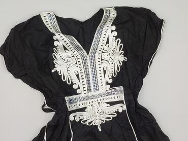Biała tunika/bluzka Woman by Tchibo - Kolor: śnieżnobiały - Krój: luźny, z dłuższym tyłem; rozcięcia po bokach - Dekolt: w kształcie V - Rękaw: 3/4 - Ozdoby: pasy z jasnymi cekinami wzdłuż dekoltu...