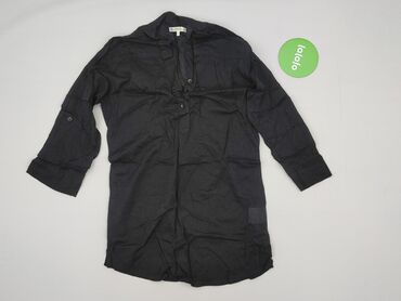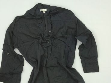 Czarna tunika/koszula damska House Brand - Fason: luźna tunika z dekoltem w kształcie litery V - Rękawy długie z możliwością podpięcia (patki z guzikami) - Z przodu mała kieszonka zapinana na guzi...