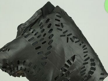 - Przód: efektowna, satynowa aplikacja z wycinanym wzorem roślinnym (laser cut), pod spodem czarna podszewka dzianinowa