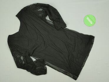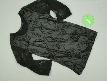 Czarna tunika damska z koronkowym wzorem na przodzie. Posiada okrągły dekolt i rękawy o długości trzy czwarte. Na plecach tunika jest gładka, czarna. Po bokach, na całej długości, znajdują się czar...Stan:
