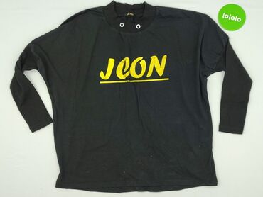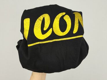 Czarna tunika damska marki La Pia w rozmiarze L/XL. Tunika ma krótki rękaw i okrągły dekolt, ozdobiony białym obszyciem. Z przodu znajduje się srebrny nadruk imitujący logo. Na dole tuniki, z przod...Czarna bluzka/tunika La Pia z napisem „ICON” w kolorze złotym na przodzie.