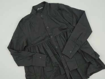 Damska koszula tunikowa, czarna - Fason: przedłużana tunika z rozcięciami po bokach i zaokrąglonym dołem (tył dłuższy) - Zapięcie: półplisa na guziki - Kołnierzyk: klasyczny - Rękaw: długi, mankie...