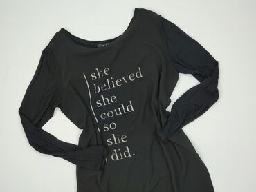 Czarna bluzka damska z nadrukiem „Believe in Love”. - Krój: rozszerzany, tunikowy; dekolt szeroki łódkowy, opadający na jedno ramię - Rękaw: krótki/kimono - Materiał: cienka, elastyczna dzianina (...