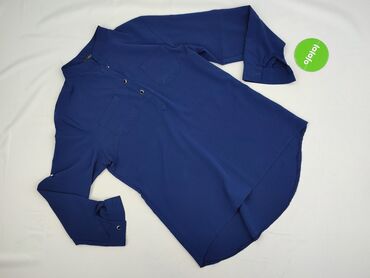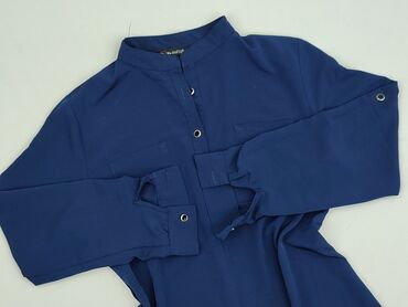 Koszula/tunika damska – kobaltowa - Fason: luźny, tunikowy - Dekolt: w serek z krótką stójką - Zapięcie: brak pełnego zapięcia, rozcięcie pod szyją - Rękawy: długie, z możliwością podpięcia (na rę...
