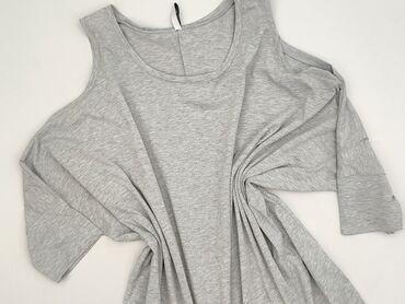 Szara tunika/bluzka damska z krótkim rękawem, z dzianiny bawełnianej. - Kolor: jasny szary melanż - Fason: luźny, przedłużony dół, okrągły dekolt, raglanowe rękawy - Detale: dwie kontrastowe ...