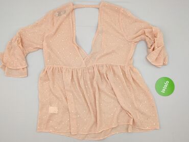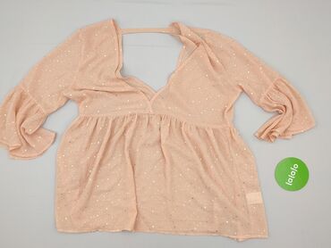 Bladoróżowa tunika/bluzka damska - Krój: luźny, prosty, długość sięgająca bioder - Dekolt: szeroki łódkowy - Rękawy: 3/4 - Dół: marszczony gumką z delikatnym falbankowym wykończeniem - Dodatki: pa...