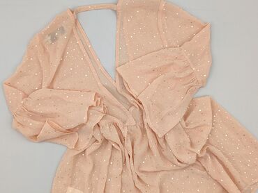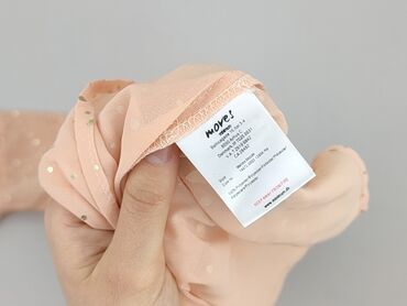 Bladoróżowa tunika/bluzka damska z długim rękawem. Zwiewny, cienki materiał o delikatnie marszczonej fakturze. Dekolt w kształcie litery V zdobiony szeroką koronkową aplikacją z okrągłymi motywami ...