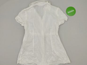 Biała damska tunika/bluzka z krótkim rękawem - Fason: tunika o luźniejszym kroju, długość za biodra - Dekolt: okrągły - Zapięcie/dekor: trzy guziki z przodu - Wstawki: ażurowa koronka/haft angiels...