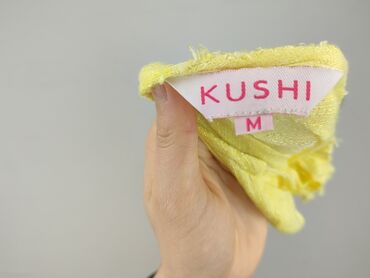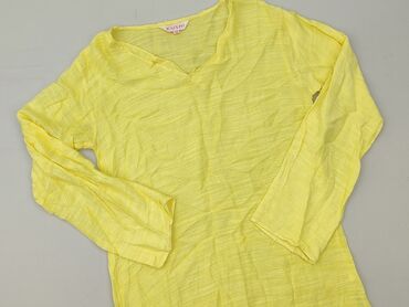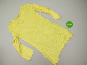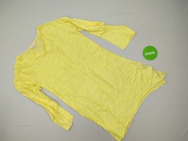 Żółta damska bluzka tunikowa, rozmiar S. - Intensywny, słoneczny kolor. - Długi rękaw z wiązaniami przy mankietach. - Dekolt z delikatną falbanką i dwoma wąskimi troczkami z przodu. - Przód z ozdo...