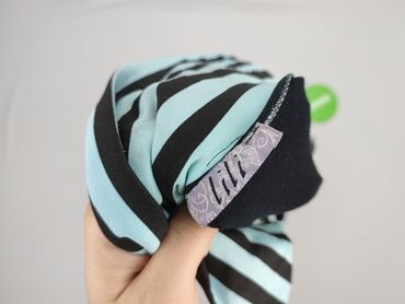 - Materiał (metka): 95% poliester, 5% elastan (główna tkanina); wstawki w paski 95% wiskoza, 5% elastan