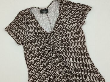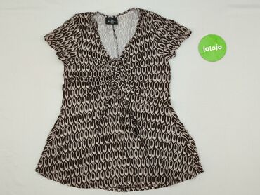 Bluzka/tunika damska GINA BENOTTI - Rozmiar z metki: M (40/42) - Krój: dopasowany w talii, lekko rozkloszowany dół - Rękaw: krótki - Dekolt: kopertowy, zakładany - Wzór: abstrakcyjny/kwiatowy – mi...