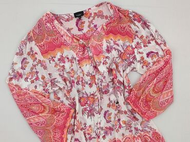 Różowa tunika/luźna bluzka damska BEL0VED WOMAN - Rozmiar na metce: XL - Krój: rozszerzany ku dołowi, długość do połowy uda; krótkie rękawy, dekolt okrągły - Wzór: drobne kwiatki w odcieniach gran...