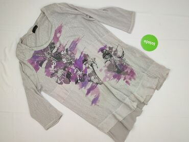 Bluzka/tunika damska z długim rękawem, rozmiar XL. - Kolorystyka: szarość z turkusowo‑niebieskimi kwiatami; dół i mankiety z ozdobnym, koronkowym nadrukiem w odcieniach granatu i błękitu. - Krój: ...