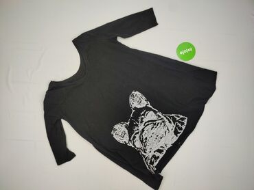 Czarna damska bluzka z nadrukiem - Kolor: czarny - Krój: luźny, z okrągłym dekoltem - Rękaw: 3/4 - Przód: duży nadruk w odcieniach szarości – profil kobiety z fantazyjnymi skrzydłami; zdobienia im...Stan: