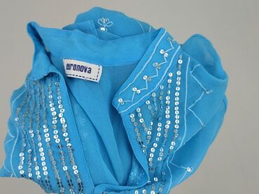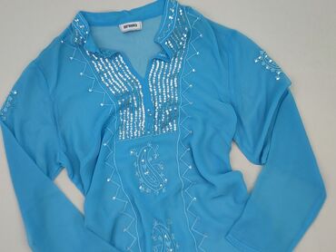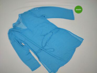 Długa koszula/tunika damska z cienkiej, przewiewnej tkaniny - Kolor: jasny błękit - Fason: luźny, wydłużony krój do połowy uda/kolan - Zapięcie: na rząd kontrastowych guzików z przodu - Rękawy: dł...