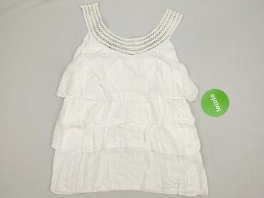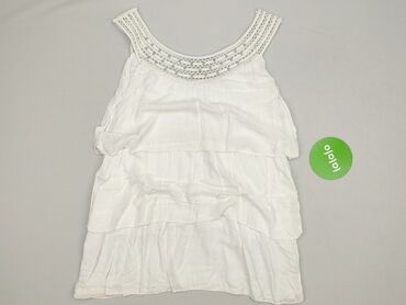 Ażurowa bluzka/top w kolorze ecru - Krój: luźny, bez rękawów, okrągły dekolt - Materiał: gładka dzianina w części środkowej; góra ramion oraz dół wykonane z ażurowej, szydełkowej koronki o dużych ...