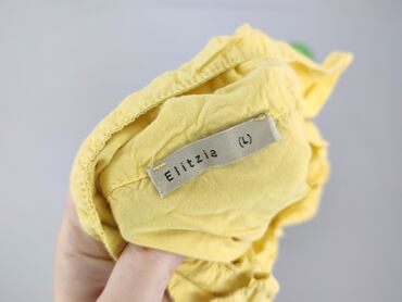 Luźna bluzka/tunika damska w kolorze pastelowej żółci. - Krój oversize z opuszczoną linią ramion i dłuższym tyłem; asymetryczne wykończenie dołu. - Długie rękawy. - Miękka, elastyczna dzianina: 95...