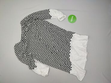 - Wzór: czarno‑biała jodełka/zygzak; kontrastowe białe wykończenia na dole i na rękawach
