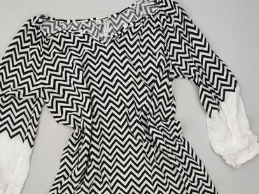 Tunika damska WEARHOUSE – model Peace Tunica - Rozmiar: L (na metce) - Materiał: 100% poliester - Kraj produkcji: Paris / Made in Paris - Kolor/wzór: czarna baza z fioletowo‑kremowym, geometryczno...