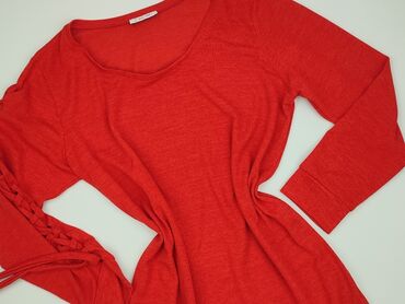 Czerwony sweter/tunika damska - Fason: luźny, prosta linia, długość do połowy uda – do noszenia jako tunika lub dłuższy sweter - Rękawy: 3/4 - Dekolt: okrągły - Dzianina: miękka, elastyczna, średn...