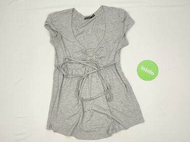 Szara tunika/bluzka damska HOUSE – rozmiar S - Fason: luźna, wydłużona tunika z długim rękawem - Kolor: jasny melanż szary - Kontrastowe wykończenia: czarne lamówki przy dekolcie, mankietach oraz ...