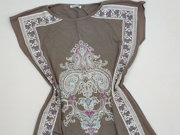 Długa tunika/sukienka boho w kolorze ciepłego brązu. - Materiał: 100% rayon (wiskoza), metka „Made in India” - Rozmiar z metki: S - Fason: lekko rozszerzany, długość midi, krótkie rękawy - Zapięci...