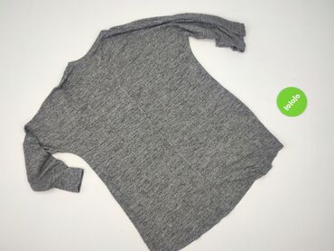 Szara damska bluzka z długim rękawem, rozmiar XL. - Miękki, elastyczny dzianinowy materiał w melanżu szarości. - Okrągły dekolt. - Na przodzie dekoracyjny nadruk w kolorze granatowym: rośliny/łą...