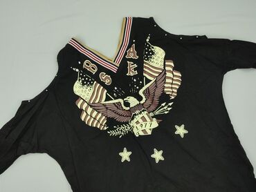 Czarna tunika/bluzka damska BY LOVE ME - Krój: swobodny, rozszerzany ku dołowi, wydłużone boczne rogi (asymetryczny dół) - Rękaw: 3/4 - Dekolt: okrągły - Materiał: dzianina bawełniana/elastyczna (...Stan: