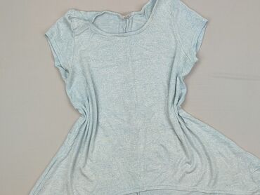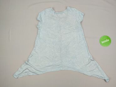Bluzka/tunika damska w kolorze bardzo jasnego błękitu (prawie pastelowy). - Luźny, swobodny krój z obniżoną linią talii i marszczeniami. - Dłuższy, zaokrąglony tył – efekt high-low. - Długie ręk...