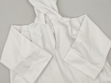 Biała damska bluzka/tunika z kapturem, z przodu aplikacja misia z srebrnych cekinów. - Krój luźny, wydłużony tył - Rękaw 3/4 - Materiał: 95% bawełna, 5% elastan (metka „Made in Italy”) - Miękka dzi...