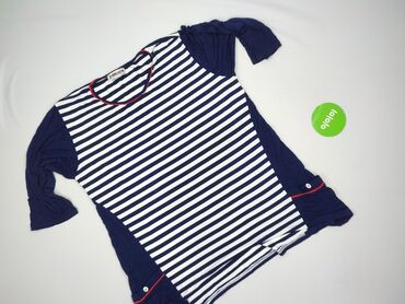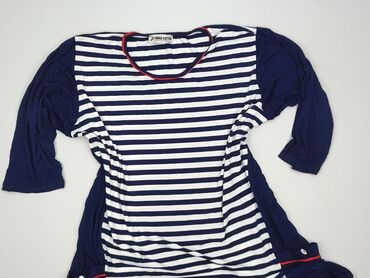 Tunika/koszulka damska Blue Seven Women - Kolor: granatowy z dolnym panelem w biało‑granatowe paski - Fason: luźny, krótki rękaw, okrągły dekolt - Detale: mała kieszonka na piersi, kontrastowa lam...