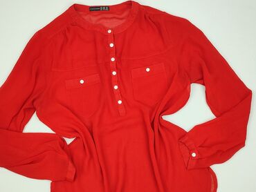 Bluzka damska Atmosphere - Kolor: intensywna czerwień - Fason: lekko taliowana tunika z dekoltem w serek - Zapięcie: krótka listwa guzikowa z metalowymi guziczkami z przodu; mankiety również zapin...