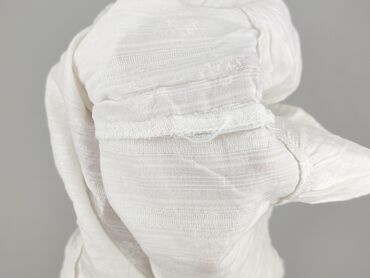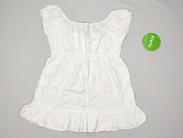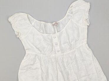 Biała koszula/tunika damska z krótkim rękawem - Fason: lekko rozkloszowana, dłuższa tunika zapinana na rząd guzików z przodu - Dekolt: w kształcie litery V bez kołnierzyka - Rękaw: krótki, luźny -...