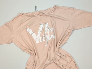 Bluzka/tunika damska z dzianiny, kolor pudrowy róż z szarymi wstawkami. - Krój: lekko taliowany, długość do bioder, rozcięcia po bokach u dołu. - Rękaw: 3/4, zakończony szarą lamówką. - Dekolt: ok...Stan: