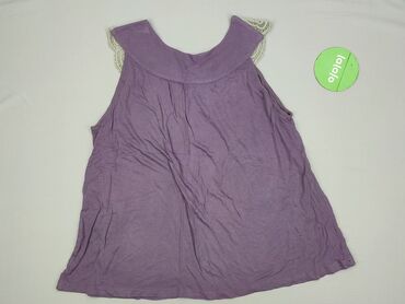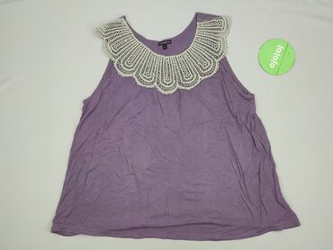 Bluzka bez rękawów damska – lawendowa - Krój: luźny, lekko rozkloszowany ku dołowi - Dekolt: stójka z krótką listwą guzikową (małe okrągłe guziki) - Detale: ozdobne przeszycia na karczku, delikatn...Stan: